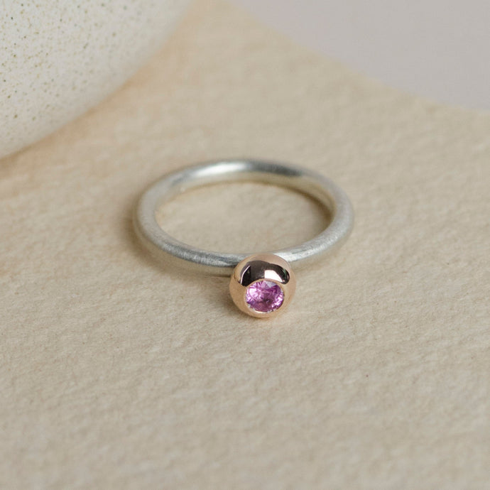 ORIGO M gyűrű rozéarany foglalatban rózsaszín zafír