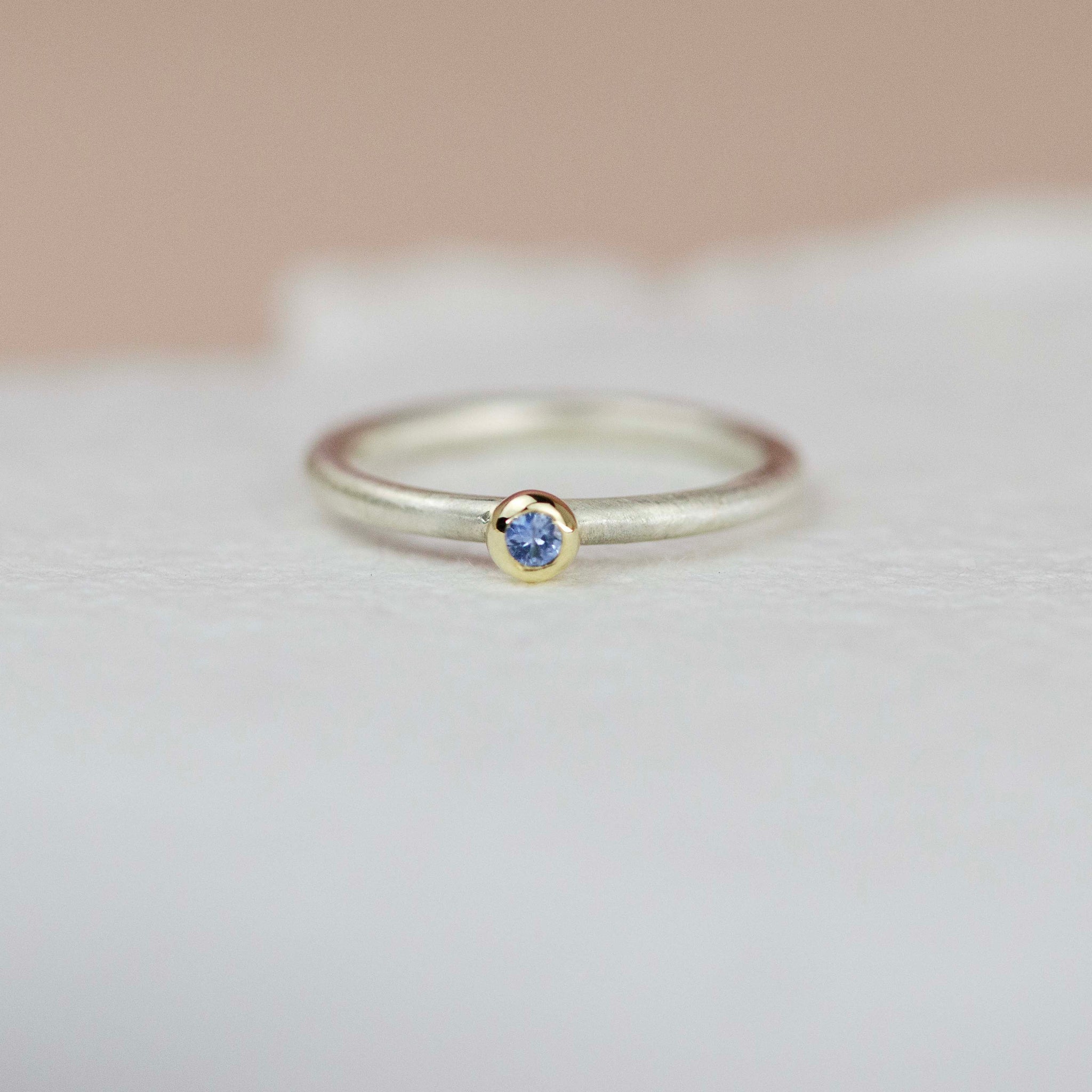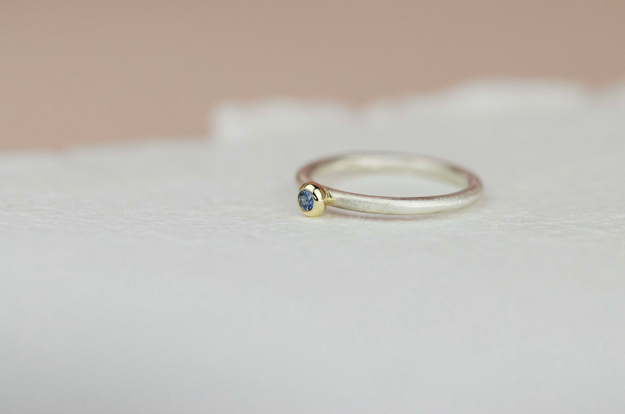 Az ezüst - arany Candy gyűrűk, 925 finomságú ezüstből készültek és cca. 2 - 2.5 mm átmérőjű drágakő díszíti a 14 karátos arany foglalatot.