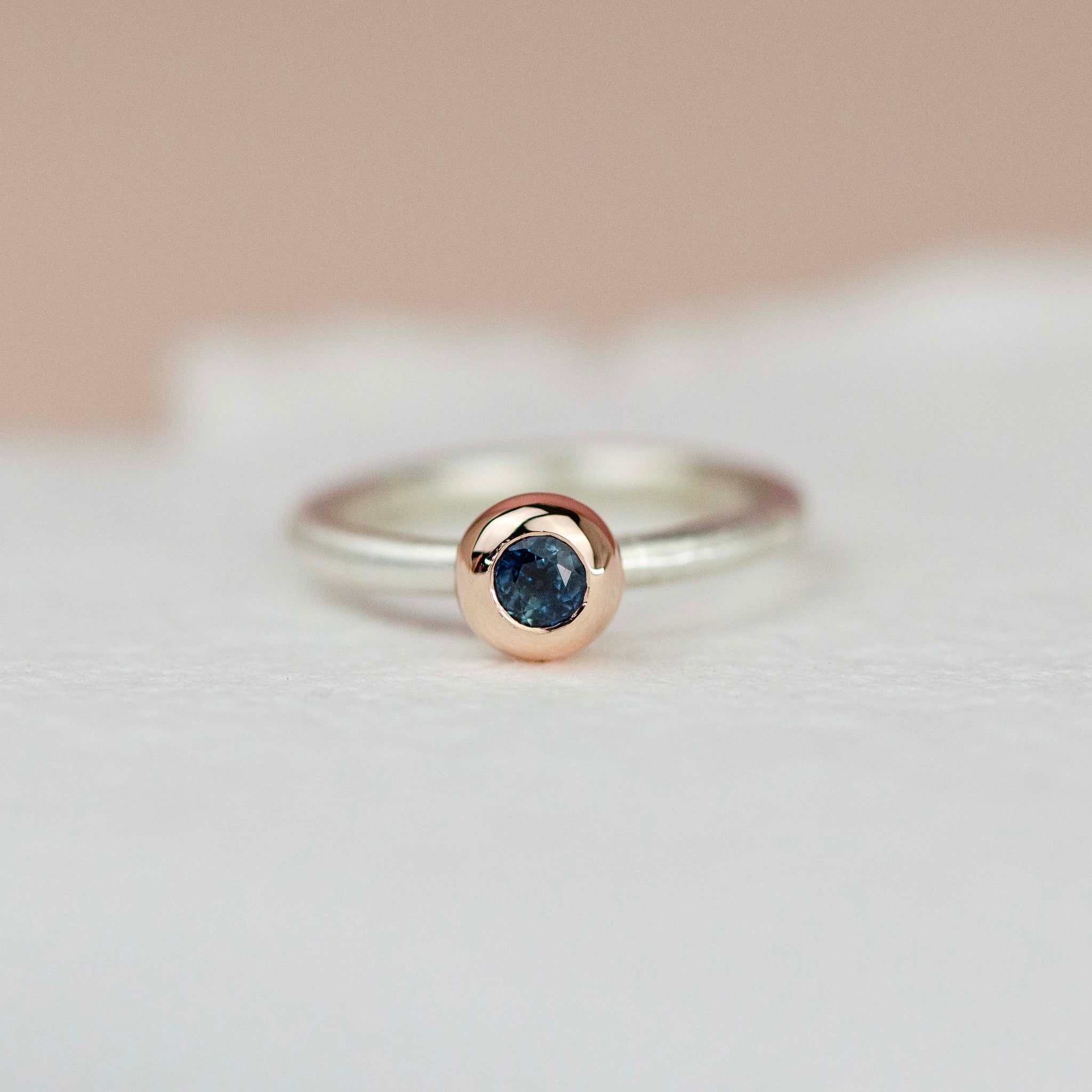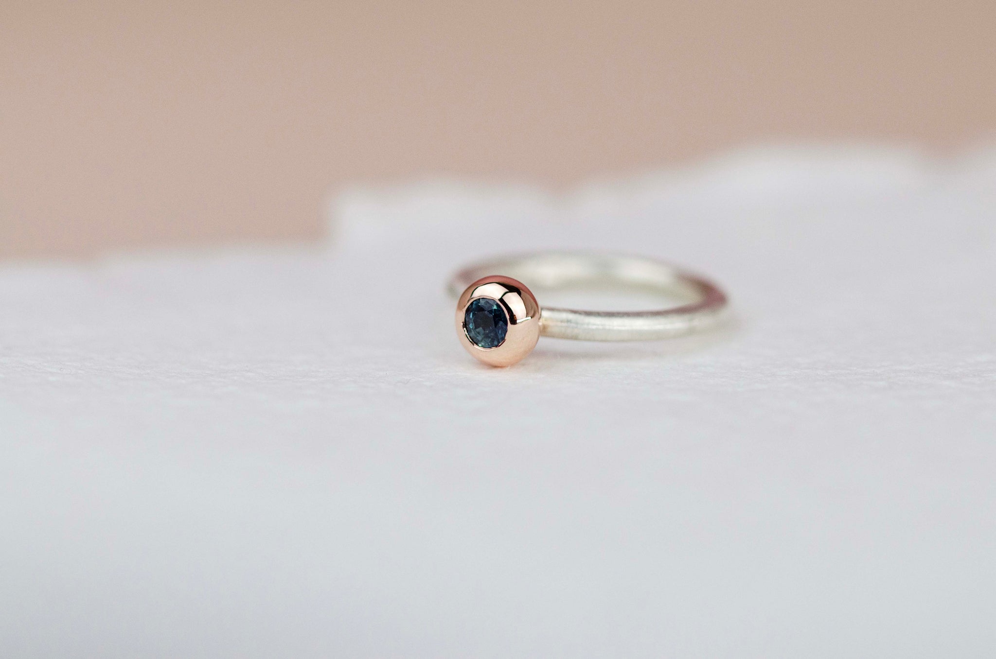Az ezüst - arany ORIGO S gyűrűk, 925 finomságú ezüstből készültek és cca. 3,5 mm átmérőjű drágakő díszíti a 14 karátos arany foglalatot.